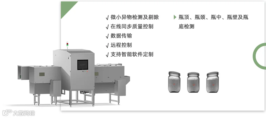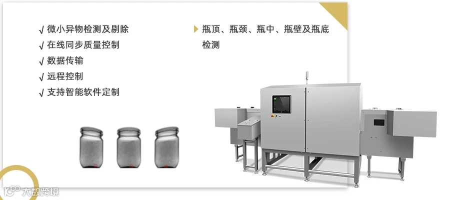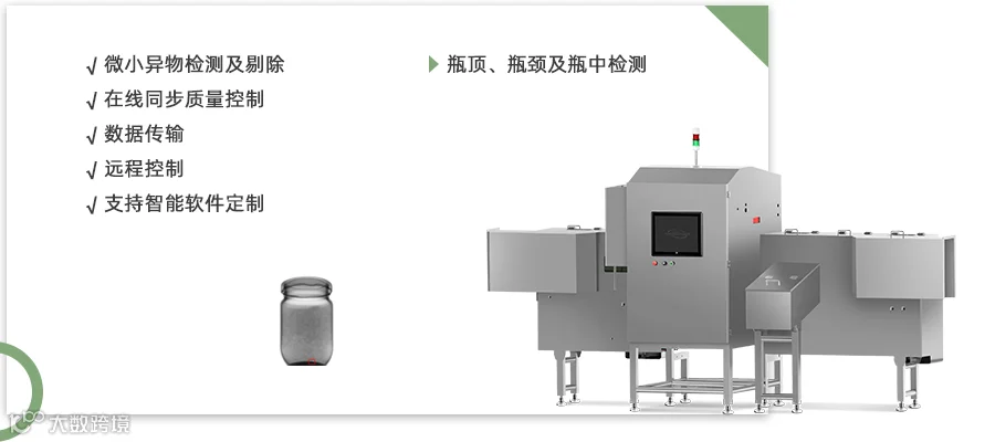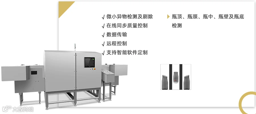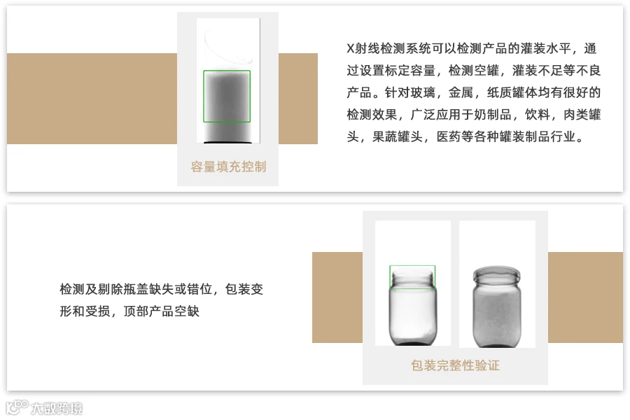玻璃、陶瓷材质的包装产品极易在搬运或运输过程中磕碰造成容器破损,玻璃碎/陶瓷渣掉落混入包装内。复合材质包装含有金属夹层,金属检测系统无法达到令人满意的检测效果,生产线中接入X射线检测系统是最佳的解决方案。