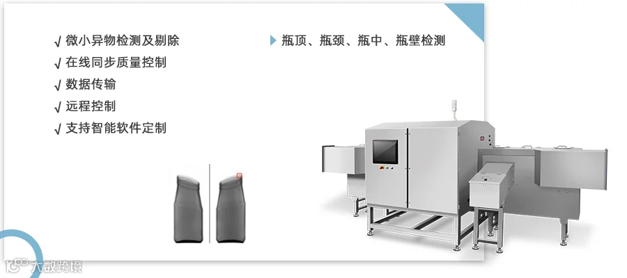 立式包装检测方案旨在解决影响制造商控制产品质量安全,维护企业口碑及声誉的因素,竭尽全力避免容器碎渣混入产品,灌装不足或过量灌装,包装不完整这类质量问题的发生。