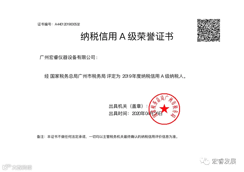 导读:公司荣获2019年纳税信用A级荣誉证书!