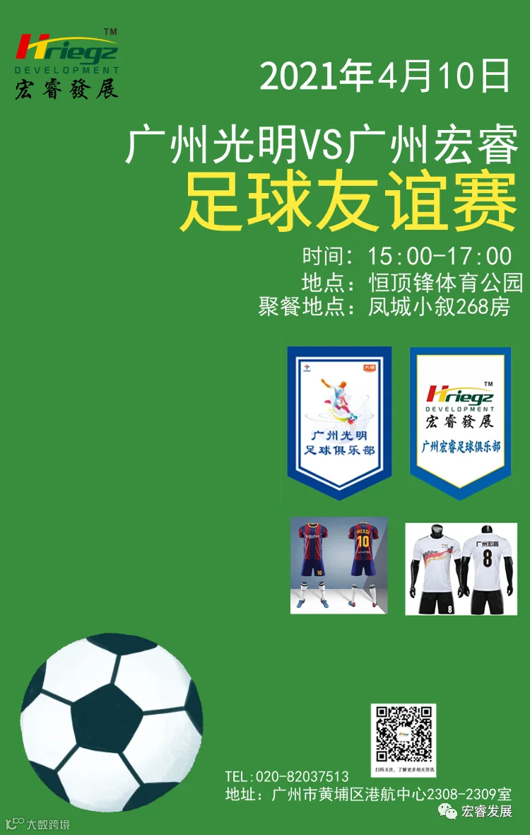 四月春风,在蓝天白云的照耀下广州光明VS广州宏睿足球友谊赛正式拉开帷幕!看到队员们奔跑在足球场上,享受运动带来的快乐。让足球文化遍地流芳。我们本着竞争和友谊的结合,狂野和理性的连接,勇敢和技巧的融合,圆满地完成了本次联谊赛!