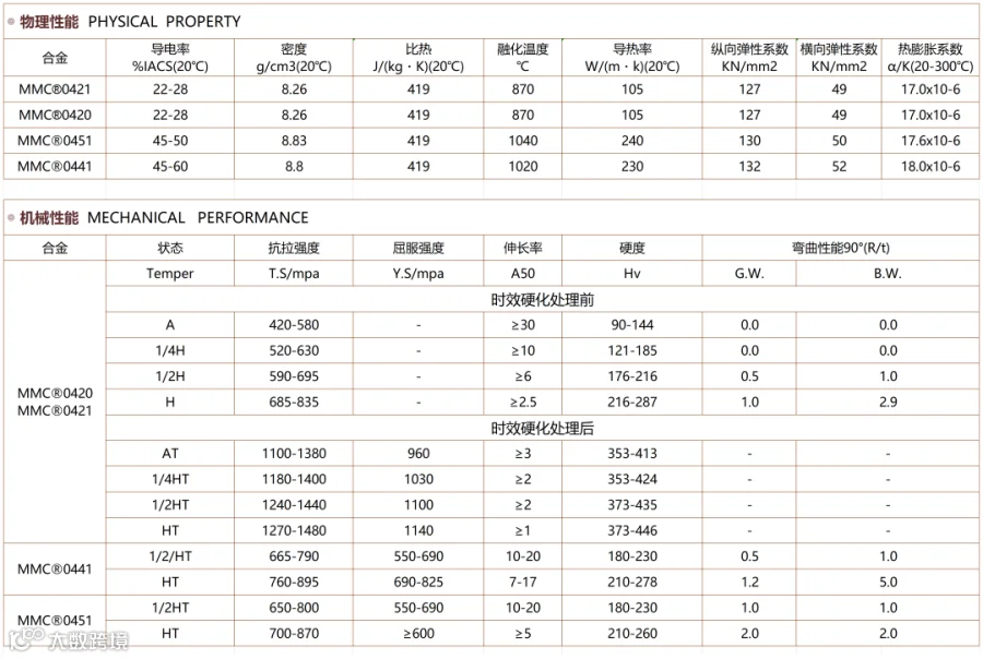 该合金可热处理强化,是理想的高导、高强弹性材料,是铜合金中的“弹性之王”。