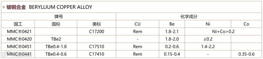 国工新材已量产MMC®04系列铍铜合金,具体选材,欢迎详询!