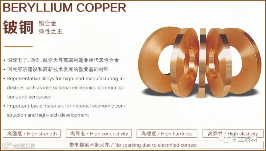铍铜(铍青铜)是目前国际电子、新能源汽车、通讯、航空航天等高端制造业用代表性合金,也是国民经济建设和高新技术发展的重要基础材料。