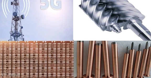 具有优异的抗高温(900℃)软化性能的铜基复合材料有棒材、线材、丝材、板带材等各式规格,其中包括Cu-Al₂O₃、Cu-SiC、Cu-TiB₂复合材料等,抗拉强度240-650 MPa,导电率75-98%IACS,抗软化温度600-900℃。可应用于5G基站背板、电阻焊电极、陀螺仪转子、集成电路引线框架、导航信号传输系统等场景。