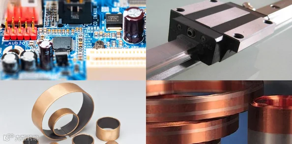 具有耐磨、减磨、自润滑特性的铜基复合材料,其中包括Cu-C系、CuNiSn-C系、CuSnPb-C系等,压缩强度100-300Mpa,可应用于大功率电子元器件电子封装材料、密封环、充电设备高压接触导电件、高功率电刷、导电滑块等场景。