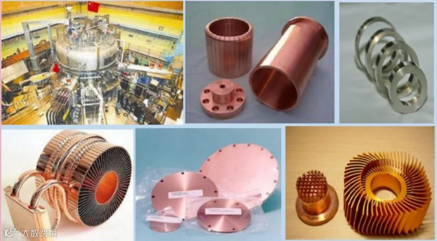 具有高强度的抗磁屏蔽铜基复合材料,其中包括高导热CuFe系、高强度CuNiSn系合金,可应用于散热背板、抗磁屏蔽背板(0.2mm厚达Cu10Fe磁屏蔽性能与2mm厚镀锌冷轧钢板相当)、核聚变反应堆中的冷却管、ITER应用的EC-H&CD天线镜、粒子加速器电磁发射装置、高脉冲磁场导体等场景。