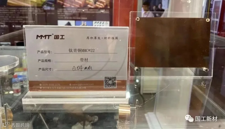 国内首家具备0.04mm超薄钛铜带材产业化全流程制备技术的企业国工新材带来国产化“材料智造+解决方案”亮相2023年慕尼黑上海电子展;围绕“国产替代、创新研发”等主题,国工新材在本次展会上展现了高端铜合金领域国内领先的工业水平。