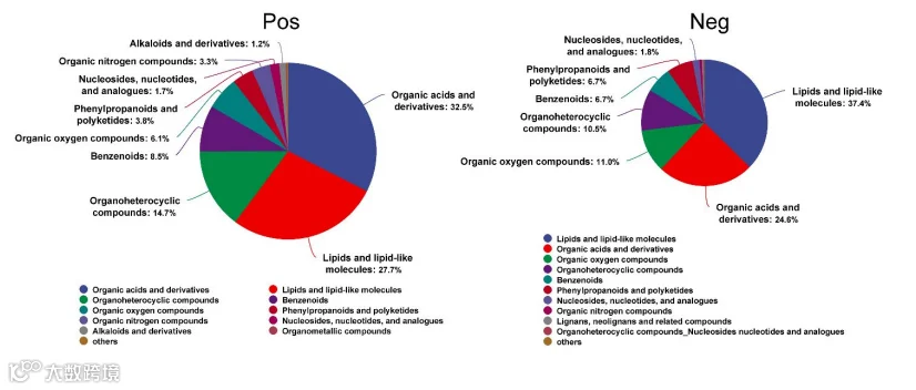 图5.采用正/负离子模式对肠道内容物中的代谢物进行鉴定。