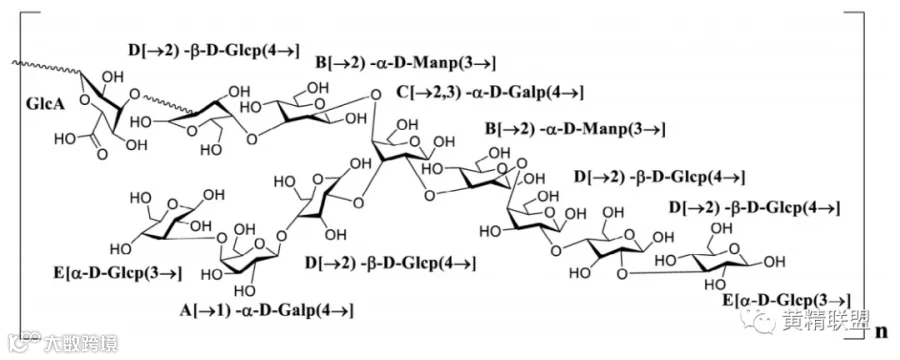 结合单糖组成、糖苷键连接、NMR分析及文献报道,推测PKP2-1的结构如图3。