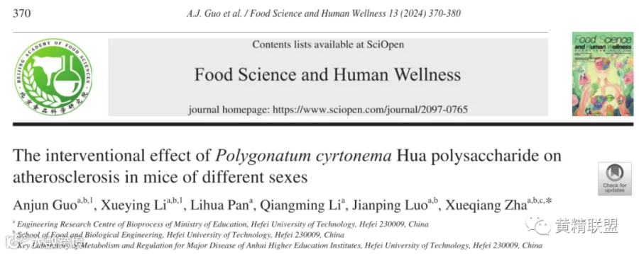导读:黄精是一种药食两用的多年生植物,具有保护心血管、抗疲劳、补脾养肺等功效。多糖是黄精主要活性成分之一,由于其降脂、抗炎和抗氧化功能,可能成为动脉粥样硬化患者的潜在治疗选择。