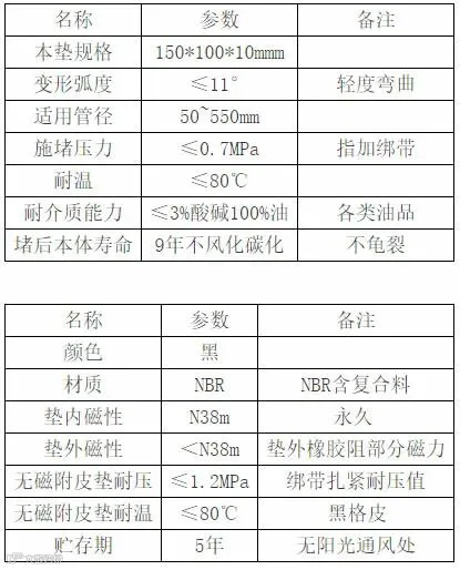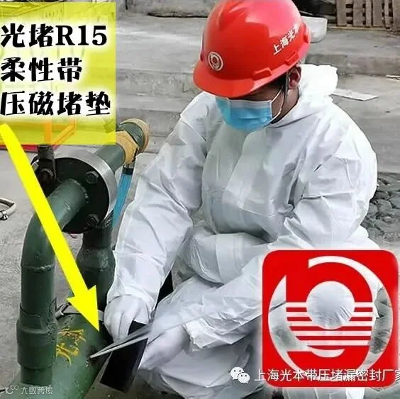 光堵R15柔性带压磁堵垫,在金属管道容器储罐出现腐蚀穿孔、跑冒滴漏时,在介质向外喷射时用本垫直接压按至漏点上,然后用双在本垫上用力揉搓和压按制止不漏为止。本垫柔性好可根据漏点随意变形粘贴止漏,操作简单便捷。需要常年放上去堵漏的,在本垫上面和周围涂抹R15磁堵垫冷硫剂,固化后成为弹力橡胶和本垫成为一体,如紧箍咒一样禁锢在漏点上。