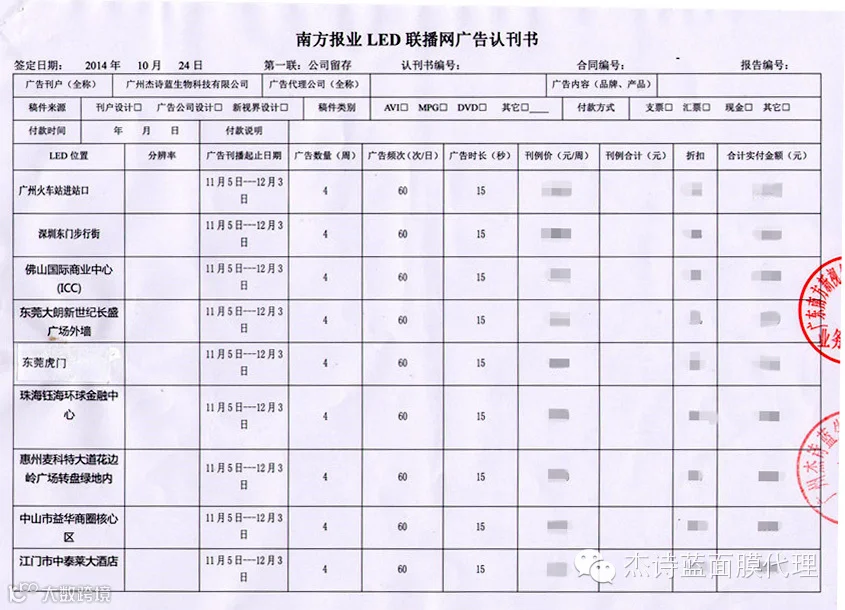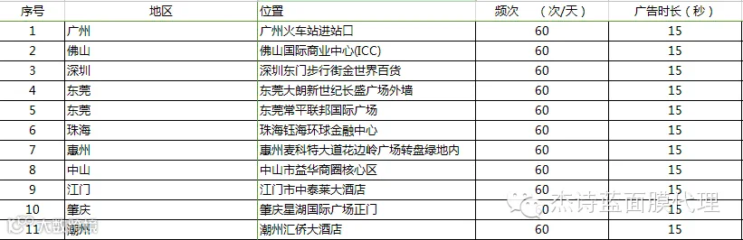 为了充分配合代理分销商拓展市场,杰诗蓝品牌总部狂砸广告费用大力支持,目前已投入运营的LED大屏超过11块,屏总面积超过1000平方米,总投费用300万,LED广告连播28天,每天15秒/60次,强势占攻市场,塑造微商优良生态商圈,趁早实现致富,让你们的人生更上一层楼!