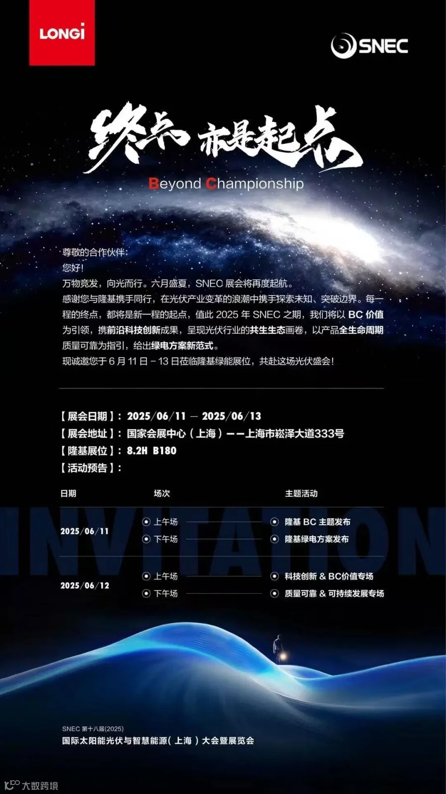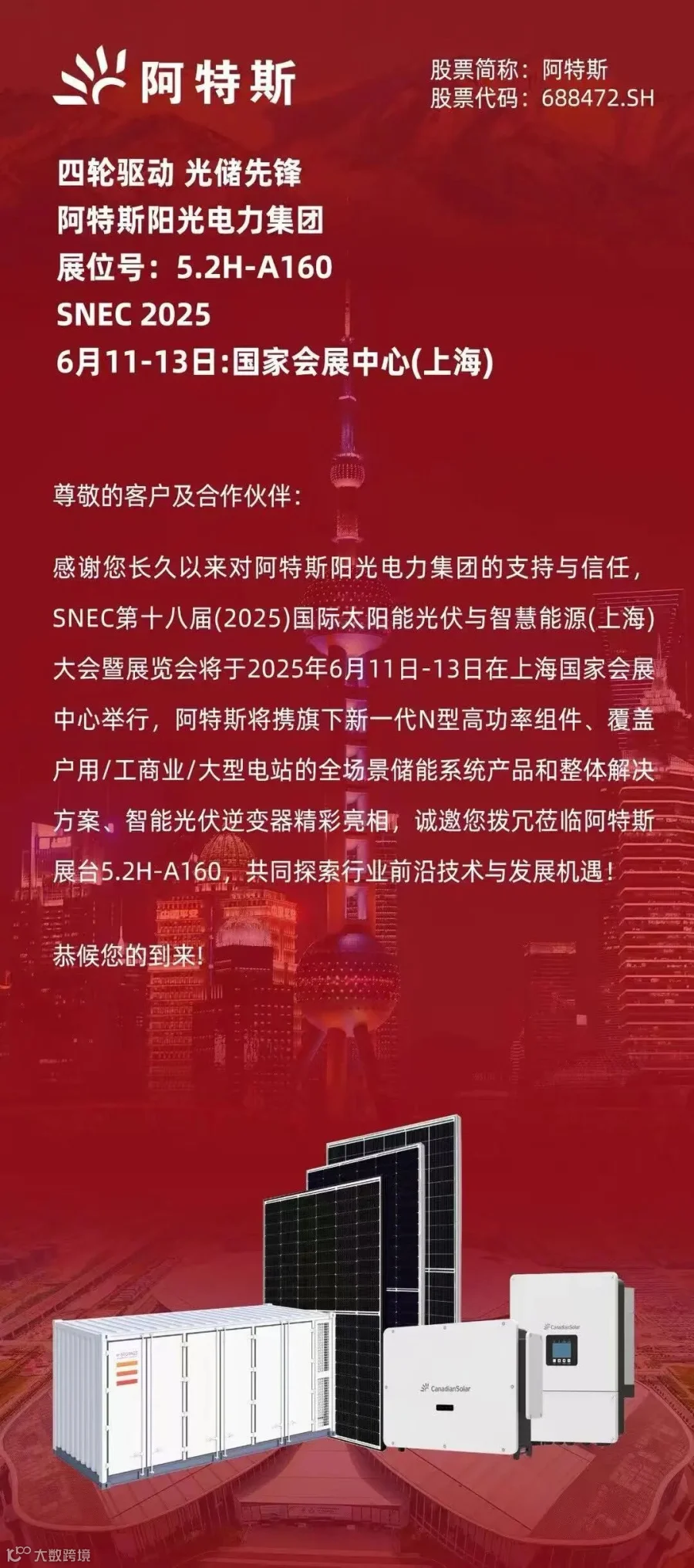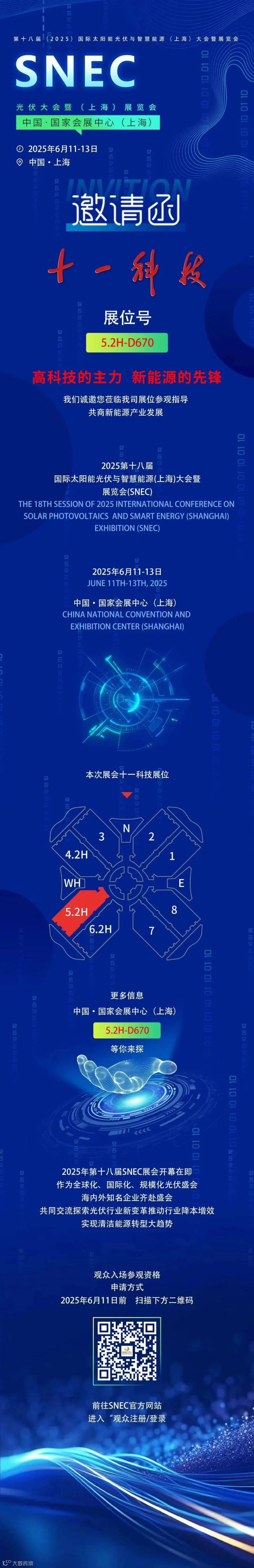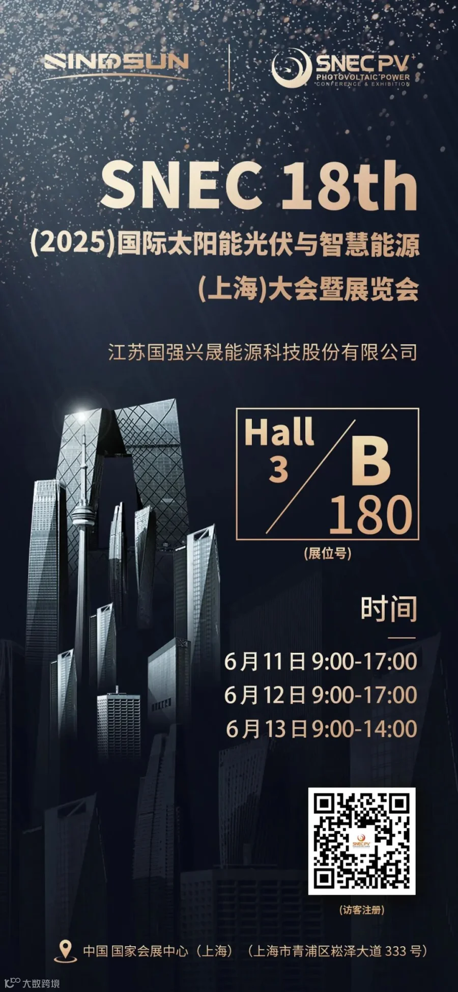 6月11日-13日,第十八届(2025)SNEC国际太阳能光伏与智慧能源大会暨展览会即将在上海举办。