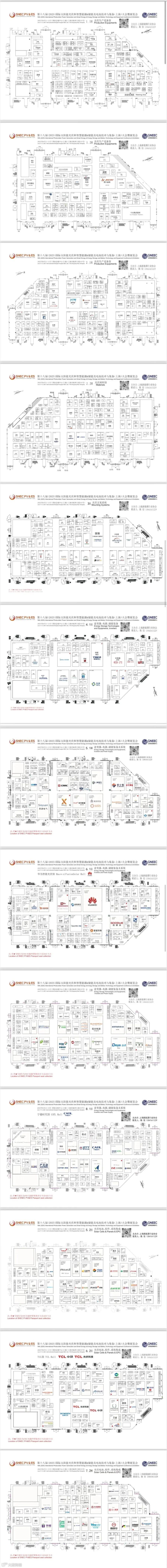 展馆主要分两层,中间一个夹层,一共15个展馆,其中,1H、1.2H、2.1H为设备馆,2.2H为材料馆,3H等为支架馆。