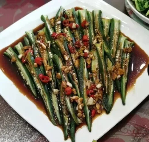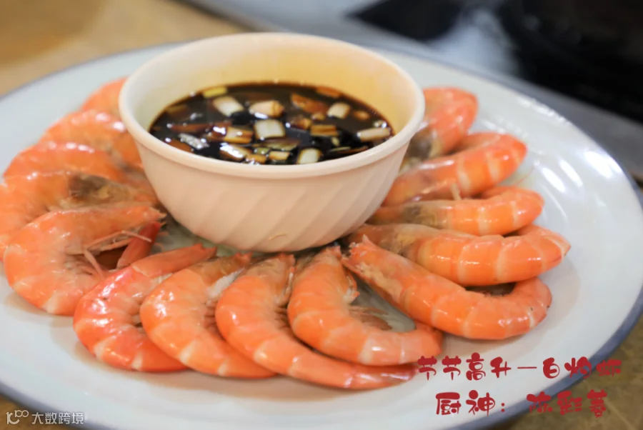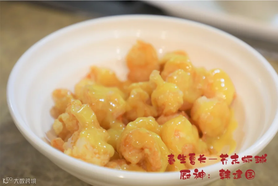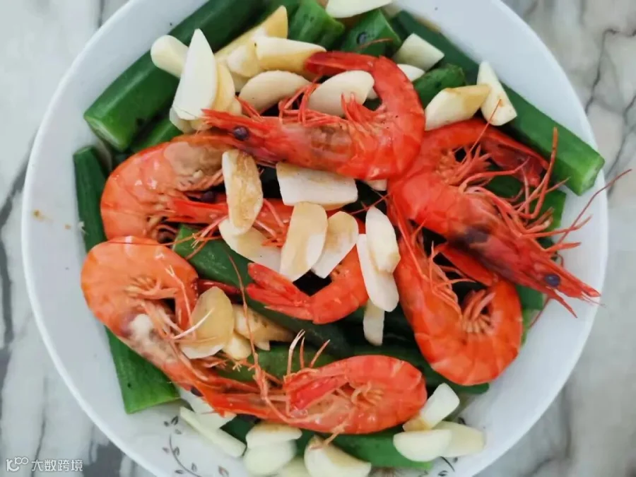 鲜虾搭配秋葵和蒜瓣,犹如龙飞腾于白云山川之间,寓意公司兴旺发达,通行天下。