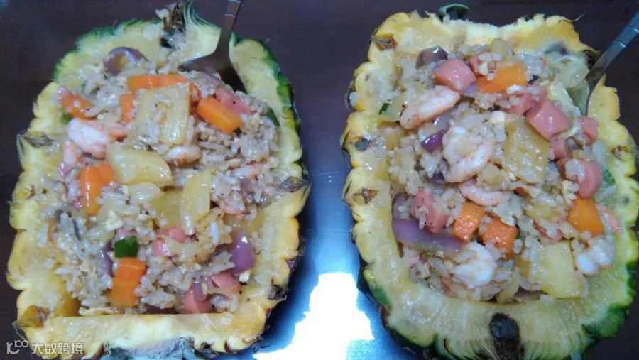 虾仁、菠萝、洋葱与米饭搭配,犹如满地黄金美玉,寓意公司财源广进,大展宏图。