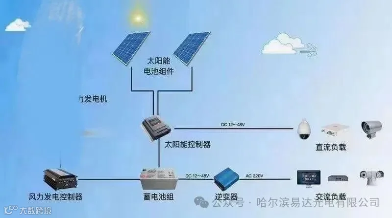 智能充放电控制器:对蓄电池进行充放电管理,防止过充和过放,保护蓄电池的寿命。