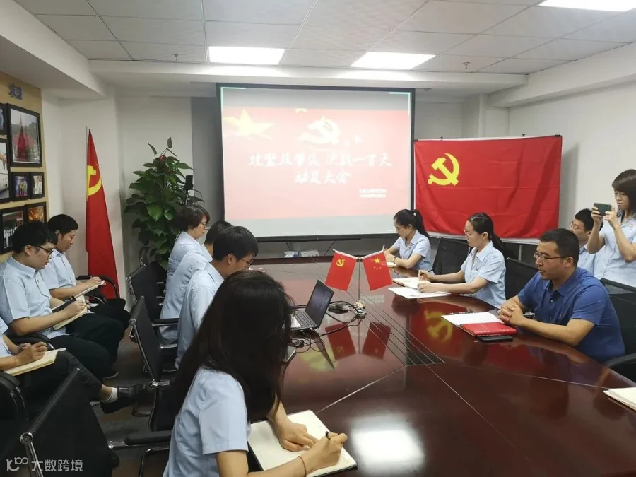 会议最后,在大区公司党支部书记、总经理郭鑫总的带领下,全体与会人员在党旗下作出庄重承诺:“攻坚双带头 决战一百天,大区公司一鼓作气勇创佳绩”。