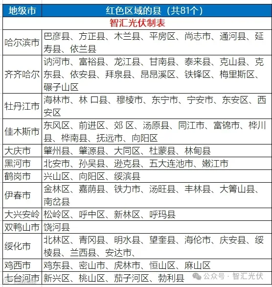 5、黑龙江省:81个县级单位为红色区域,暂停分布式接入