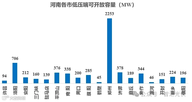 近日,河南省电网公司最新公布的截止2024年3月底,不同变电站的承载力评估结果。截止3月底,河南省低压端可开放总规模为6337MW,各地级市可开放规模如下图所示。