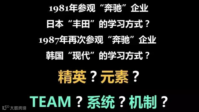1981年我到德国斯图加特参观汽车城。一进奔驰工厂我吓一跳,从总司办到标准办公室,到车间主任,到下面流水线的每一个工段,都有一个黑头发的黄种人。我说中国人真了不起,一问才知道,他们是从日本丰田公司来的。