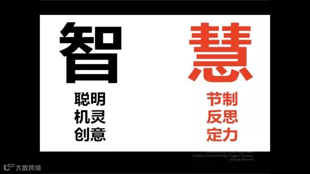 “智”、“慧”,这是中国人的哲学,但这不是一回事儿,是两回事儿。“智”是抖机灵,急中生智,小聪明,钻空子,擦边球,这些中国人都有。