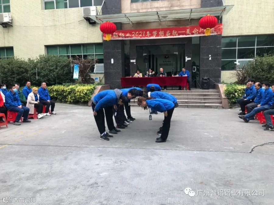 智铝团队有着家庭一样的温暖气息,也有着像军队一样的严肃执行力,以及标准化的作业流程,我们标准化的晨会就是最好的体现!
