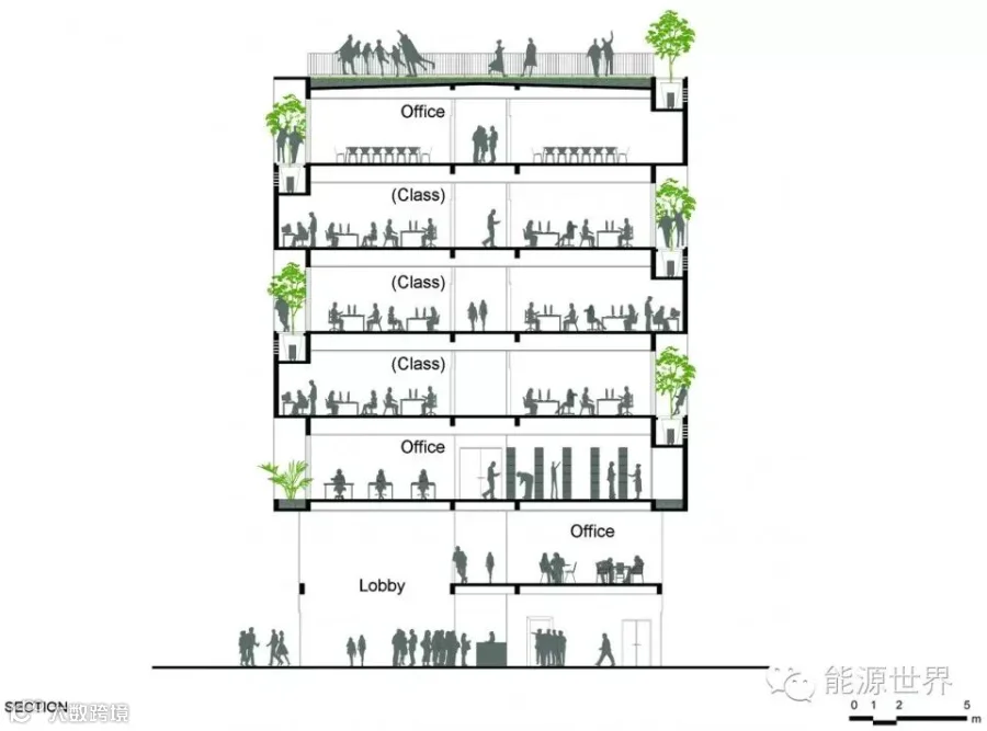 城市化的发展和越南的城市致密化对城市植被产生了巨大的影响,继而影响了城市居民和环境的紧密联系。楼内房间的树和室外花园与自然遥相呼应。通过向可持续被动式建筑优点和经验的不断借鉴和学习,这栋楼和自然之间的联系一定能有助于提高人们的环境意识。