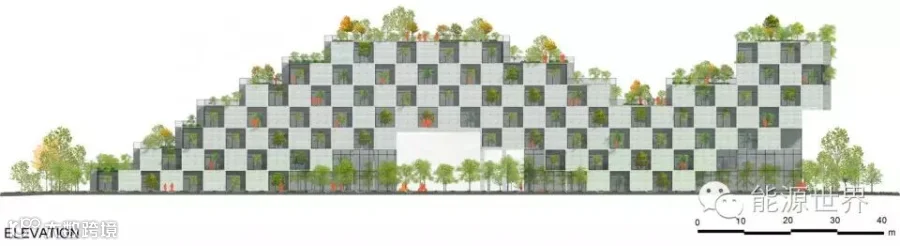 外立面采用最简单的模块来体现可持续设计的简洁朴素。这些模数是在工厂流水线上统一生产的,保证工人安全减少浪费缩短施工期。结构上选用价格低廉的混凝土,使用预制模块能保证高质量的完成度。