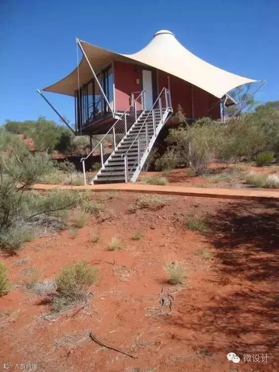 Longitude131 °的得名源于东经131度线正好从这里穿过,一望无际的荒原上,只有15座半永久性帐篷套房和一条看不见的东经线并存着。15座帐篷坐落在一个月牙形的沙丘上,面朝南面不远处的乌鲁鲁沙丘,呈弧形排开,视野开阔,但此地绝对是非请勿进的私密场所,可以不受干扰地享受荒漠巨岩的奇特风景。