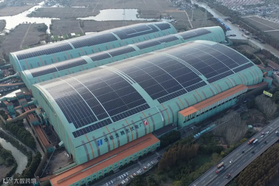 在沪武高速旁,矗立着一座国内大跨度弧形BIPV——华能龙腾光伏电站,面积达17.6万平方米、相当于25个足球场,在空中俯瞰如一面巨大的弧面镜。该电站创新性地利用封闭后近30万平方米钢网架大棚装设分布式光伏发电系统,是国内首个大跨度弧形网架结构屋面BIPV光伏支架系统,施工技术复杂、安全风险系数高,在行业内没有可借鉴的案例。