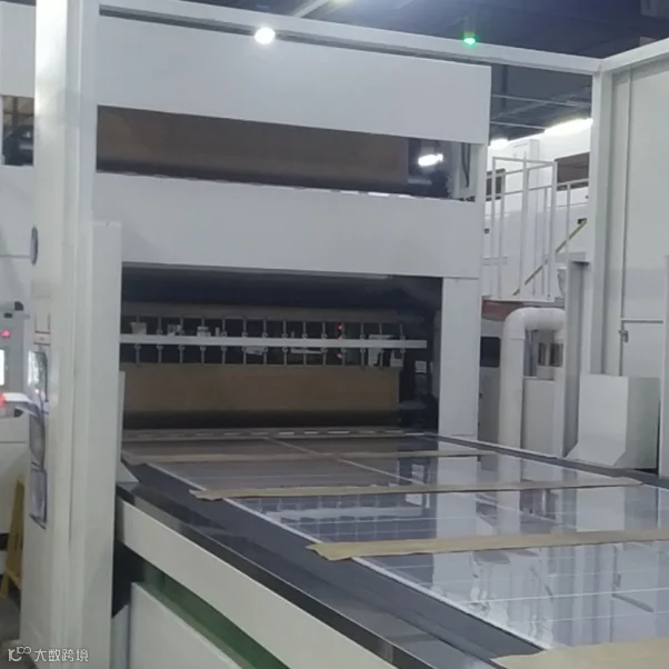 层压工序是将敷设好的层叠件放入层压机内,EVA在一定条件下融化后将与电池、玻璃、背板粘结在一起。