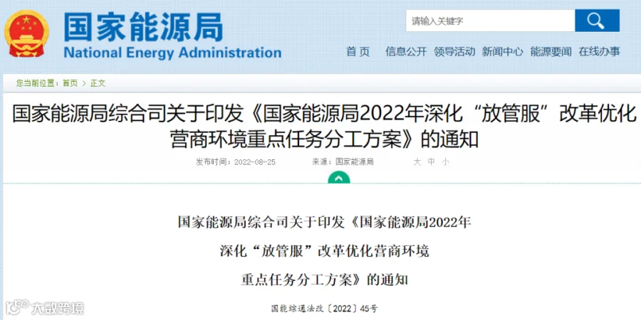 国家能源局2022年深化“放管服”改革