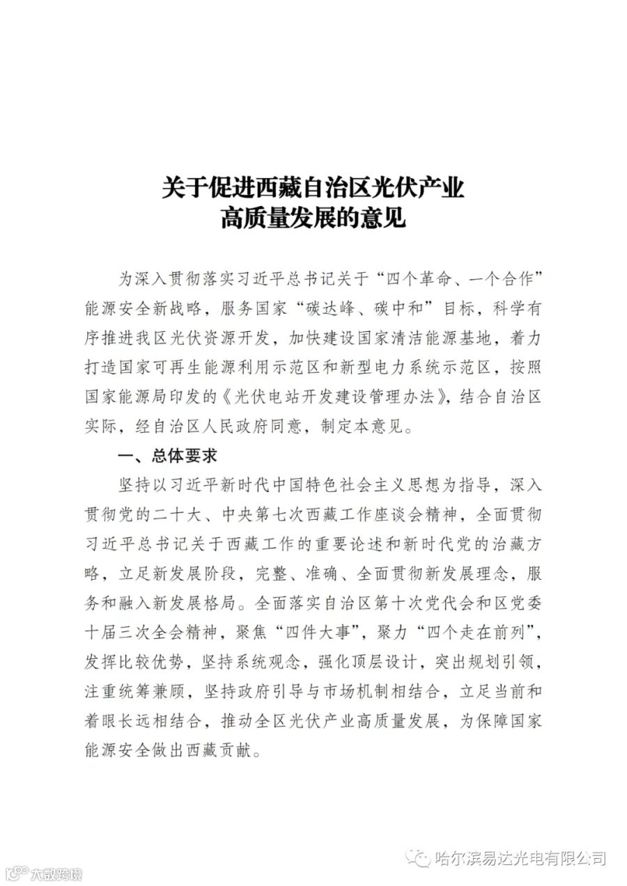 近日,西藏自治区发改委印发《关于促进西藏自治区光伏产业高