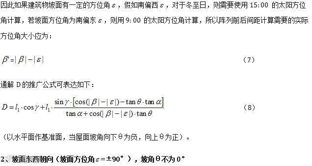 (适用条件:屋面正南朝向,当屋面倾角向下θ为负,倾角向上θ为正),对于冬至日,阵列间距一般性以上午9点或下午15点的太阳位置进行计算。