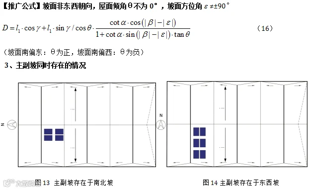 因为实际的屋面可能同时呈现坡度和方位角,也有可能屋顶坡面东西朝向或主坡副坡同时存在,因此有必要对这些复杂屋面的阵列间距做深入分析。