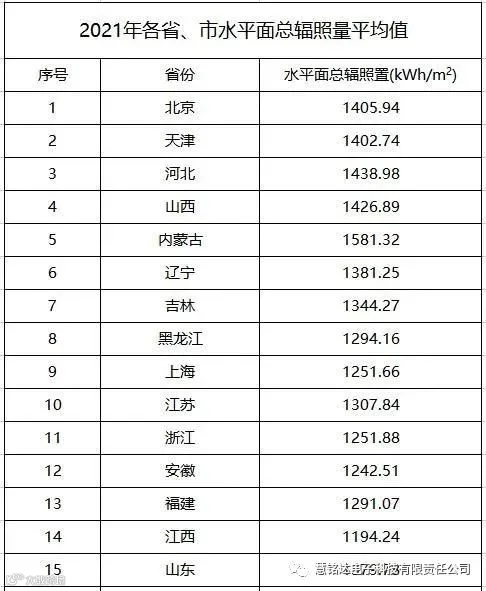 太阳能电池组件的峰值功率均在 1000W/m²条件下标定,因此采用年峰值日照小时数乘以光伏电站的装机容量。