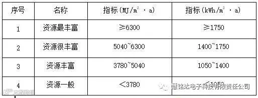 根据QX/T89-2008《太阳能资源评估方法》,按照平面辐射总量的不同,将我国划分为四个区域: