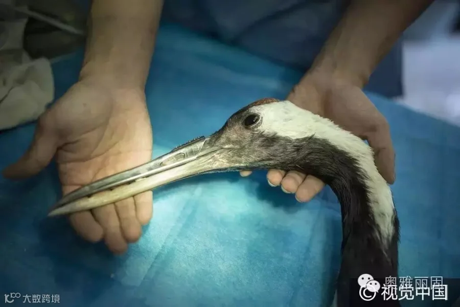2016年7月10日,广州,近一小时的手术后,丹顶鹤“立立”苏醒了,此时它已经拥有了新的钛合金“上喙”。