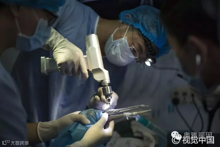 2016年7月10日,广州,随后给钛合金“上喙”上钢钉,丹顶鹤的上颌骨中空且易脆,力度需要十分轻。