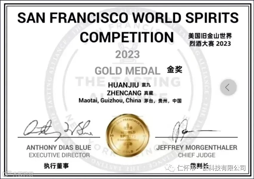 2023年,寰九酒荣获2023美国旧金山世界烈酒大赛金奖。
