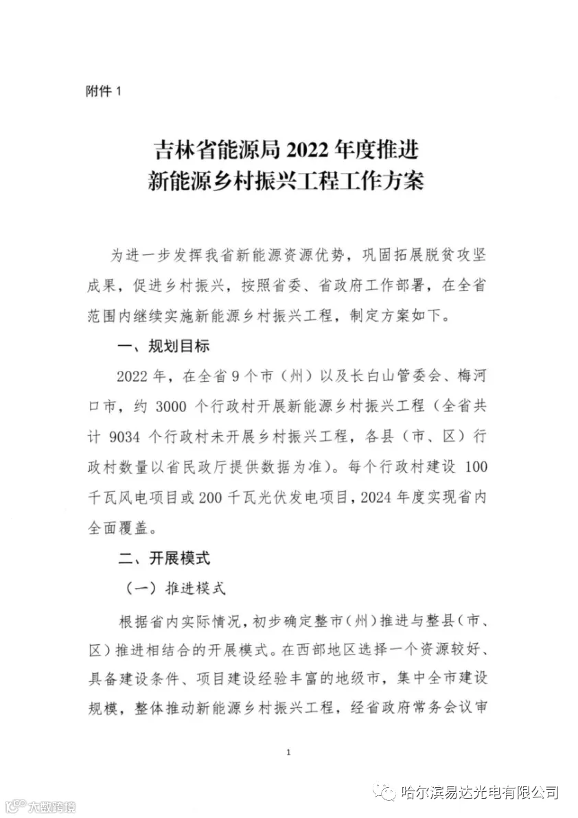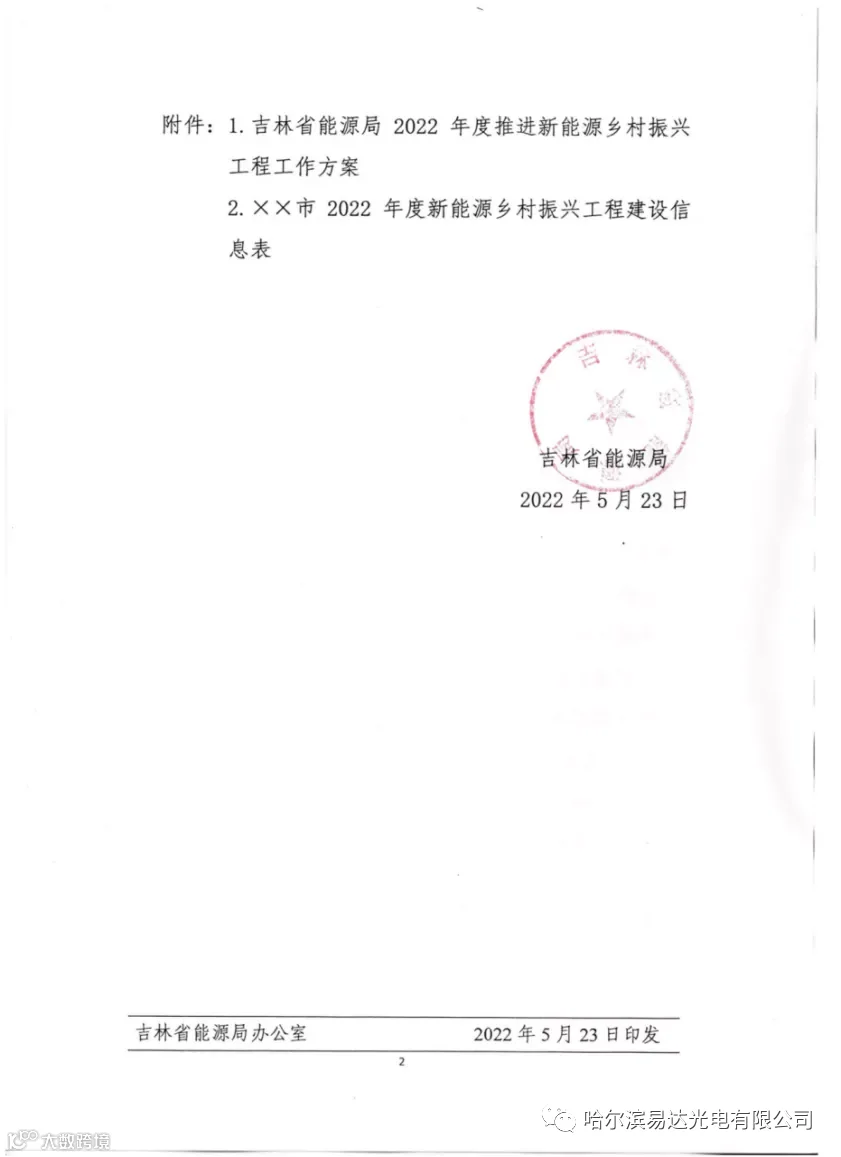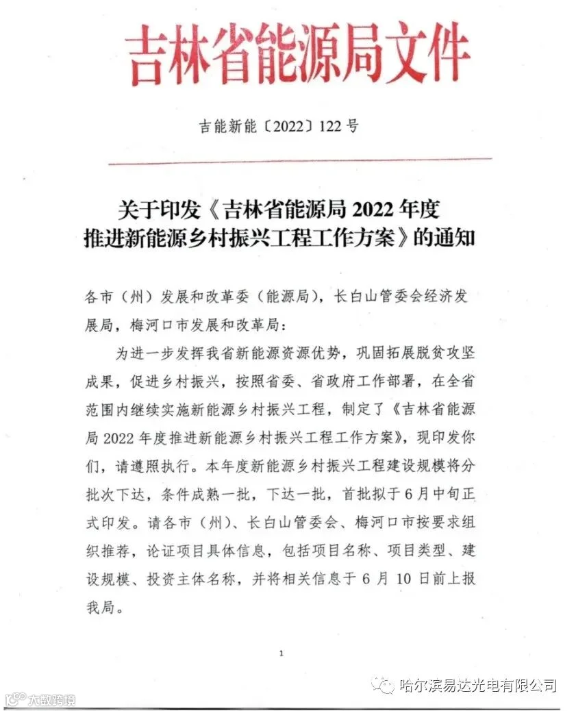 日前,吉林省能源局发布关于印发《吉林省能源局2022年度推进新能源农村振兴工程工作方案》的通知。