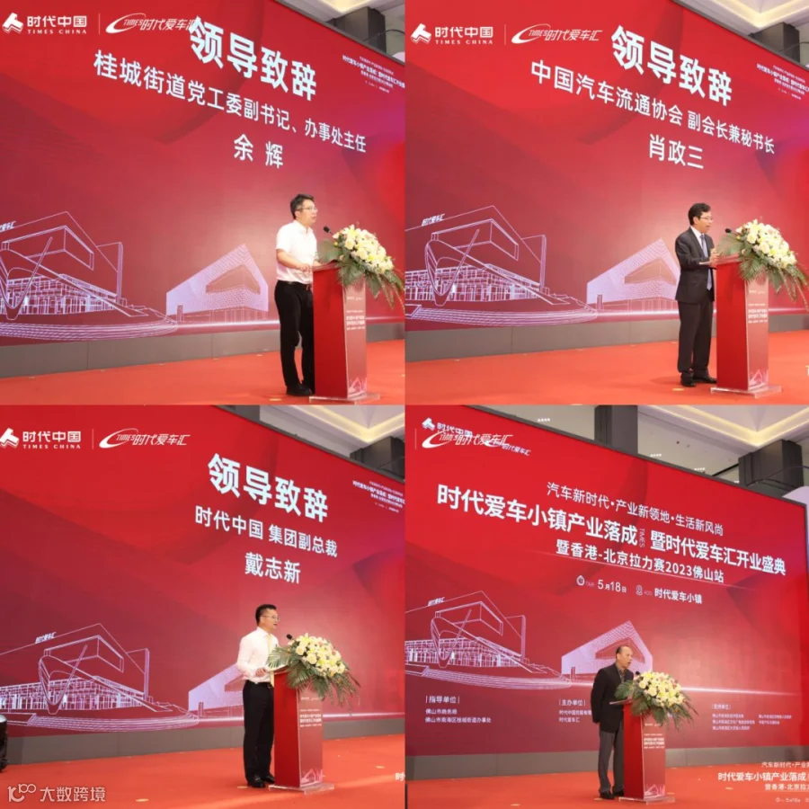 中共佛山市南海区委副书记/区长王勇、在南海区跟岗锻炼的中共双鸭山市宝山区委常委倪睿,桂城街道党工委副书记/办事处主任余辉,时代中国董事局主席岑钊雄,中国汽车流通协会副会长兼秘书长肖政三、时代中国集团副总裁戴志新、时代商业集团总经理李少艾等一众领导嘉宾、行业伙伴、商户代表及媒体代表出席了本次活动,共同见证时代爱车小镇——“时代爱车汇”正式启幕。