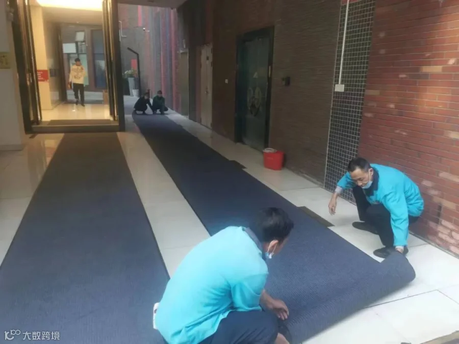 为打造一个干净整洁的园区,各写字楼开展清洗外立面玻璃活动,清洗后的一层商户外立面焕然一新;并对园区内易滑地段新增地毯,进行全方位吸尘,每一个角落都不放过。