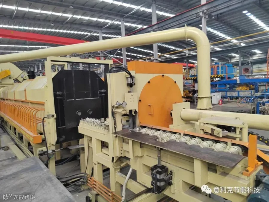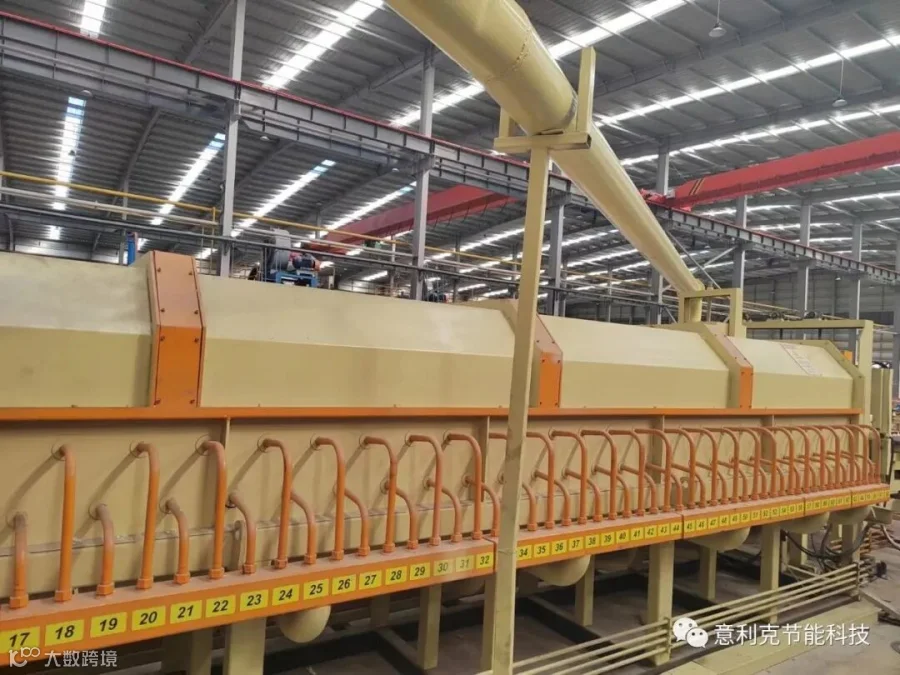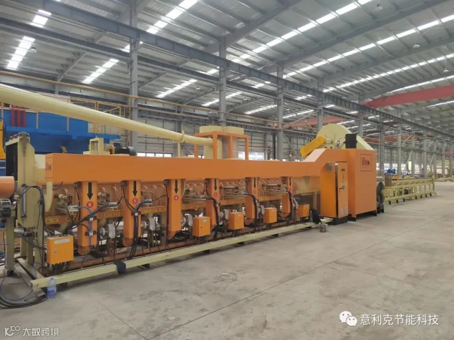 采用全新的两级余热利用和回收系统。一级余热利用系统(喷射系统)就是将高温烟气用一定的角度以约40米每秒的速度喷到冷铝棒表面,直接换热。