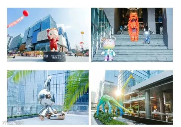 在商业空间打造上,时代·芳华里(广州)高度融合潮流艺术表达,构建兼具休闲和娱乐的潮艺文化空间,打造一系列的标志性社交打卡目的地——潮玩艺术家Sooya为CR8量身定制的全球首个Ban形象10米巨型雕塑发射萌趣信号,圈粉无数的潮玩IP星际熊COSMOS伙伴们悦动在大台阶“听海桥”的声光互动艺术装置中恣意“爬梯”,仰望星空的宙月兔空降“叠翠台”梦幻花境引人探索……