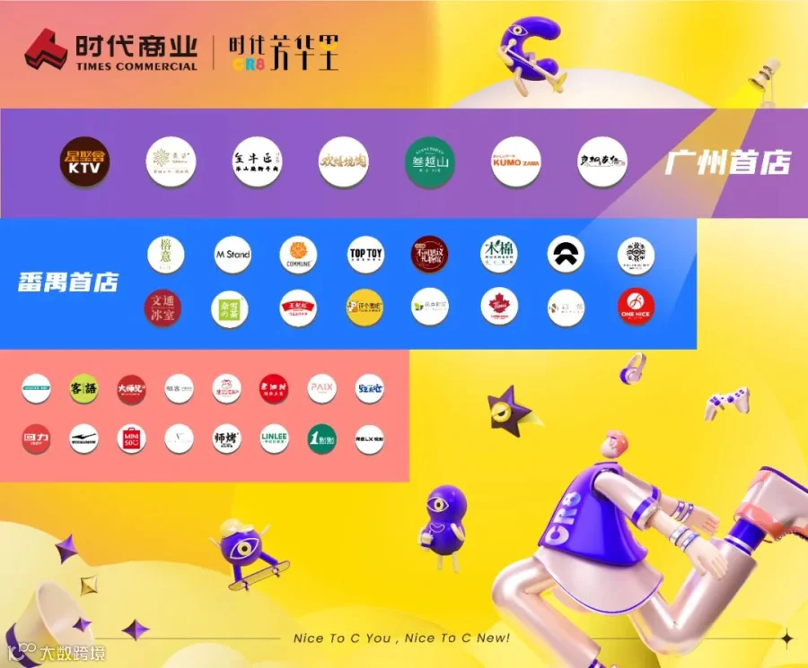 作为非常罕见汇聚办公、居住、文旅三大人流的商业旺地,时代·芳华里CR8天然坐拥365天无潮汐客流汇入。针对商务菁英社交、年轻家庭休闲、长隆游客打卡的核心需求,项目紧抓品牌招商、空间打造、文化构建3大运营抓手,打造差异化竞争壁垒。第一是遴选创新势能品牌入驻,引导、孵化、联合品牌创新升级。第二是以平台化经营思维,深度挖掘空间服务力,打造策展型体验消费场景。依托时代商业独立运营的C-LAB云幕剧场,串联潮流市集、品牌快闪店、艺术展览等一系列文化体验内容,构建“层层看展,人人剧场”的 潮艺生态。第三是最大化与长隆活动资源形成强强联动,成为游览打卡必经地,同时营造“一日五餐”全时段的社交属性餐饮,不断扩充“新聚场”外延。