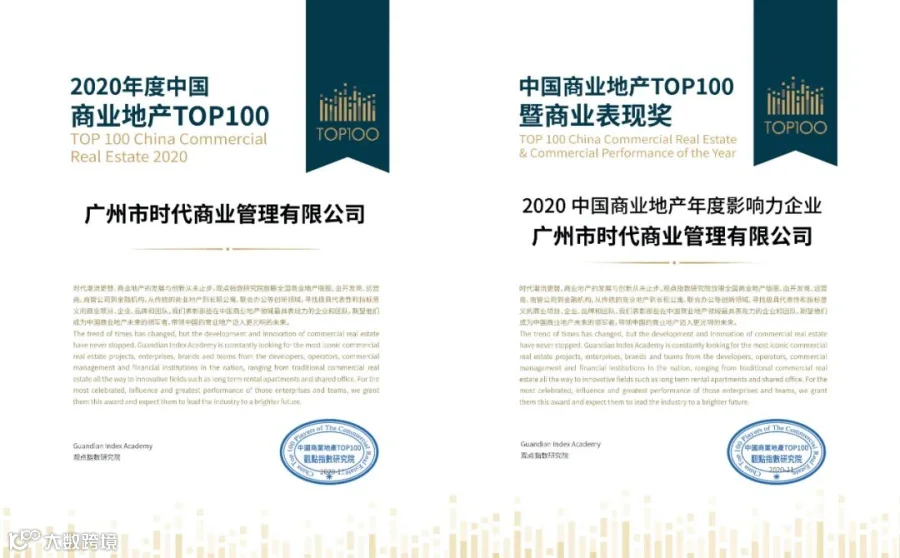 自2016年起,时代商业凭借多元化布局战略、追求卓越的产品打造能力及精细化的产品运营机制,已连续五年与华润、凯德、印力等行业知名开发商悉数登榜“中国商业地产TOP100”榜单,四度荣膺“中国商业地产年度影响力企业”大奖。
