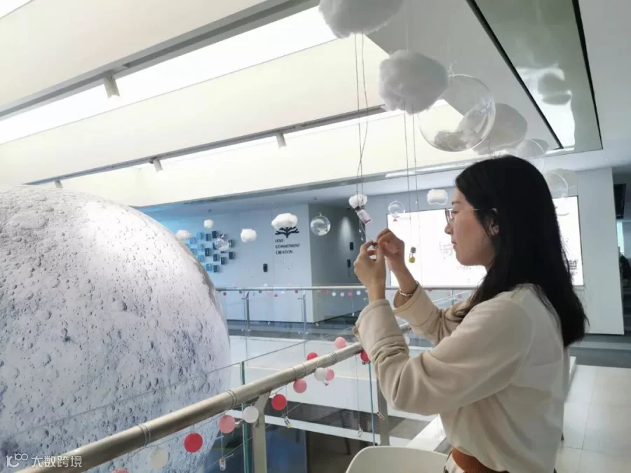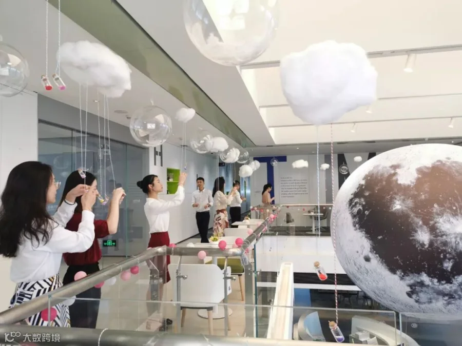 整个办公室还装饰了白云、气球、羽毛和“星星”