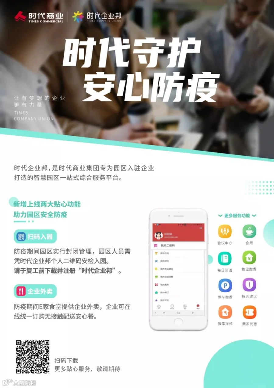 病毒无情,人有暖意。疫情当下,为进一步响应大家安心、便捷用餐的需求,时代商业特设E家食堂“企业外卖”服务,时代E-PARK项目的园区企业可通过“时代企业邦”APP在线统一订购无接触配送安心餐,让你足不出户即可立享美味午餐。